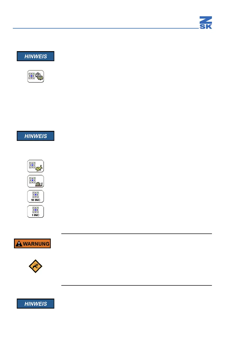 Wege manuell schnell oder langsam zu verfahren oder in 1 mm- bzw. 1/10 mm-
