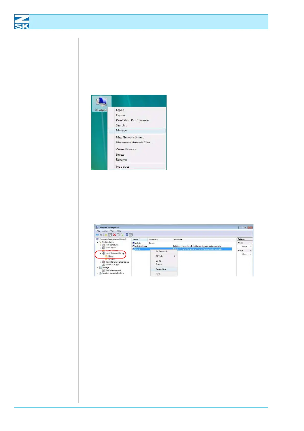 • Move the mouse pointer to the Guest user and click the right mouse button.