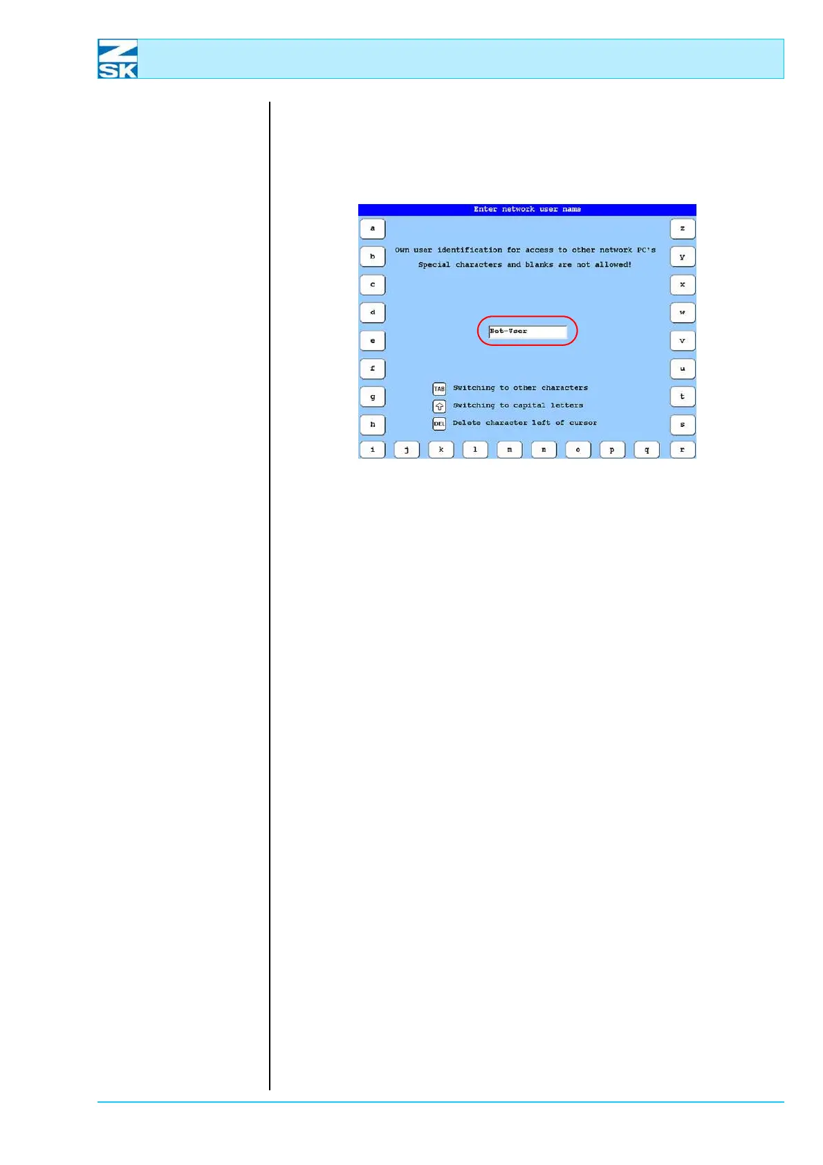 [OK] key to accept the new network user name. If the [ESC] key is pressed,