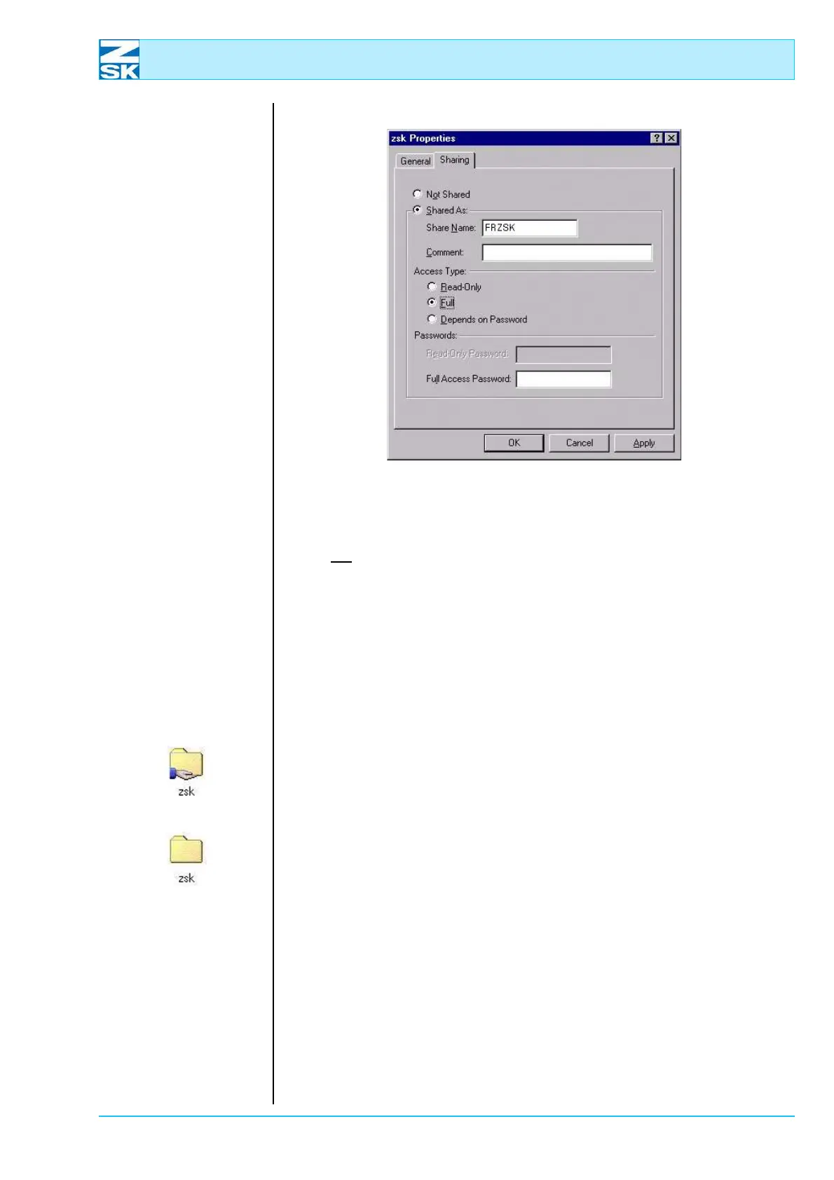 • The suggested share name ZSK is to be changed to FRZSK in this example.