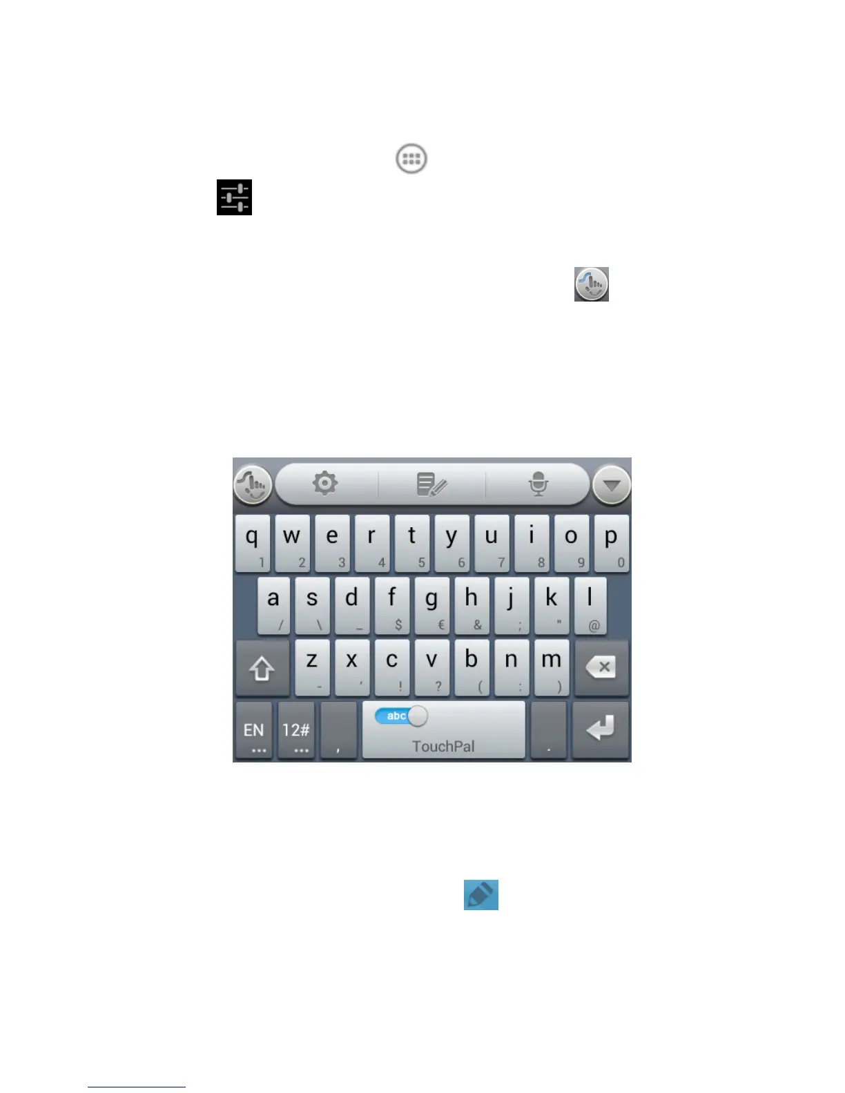 3. In the TouchPal keyboard screen, touch and clear the