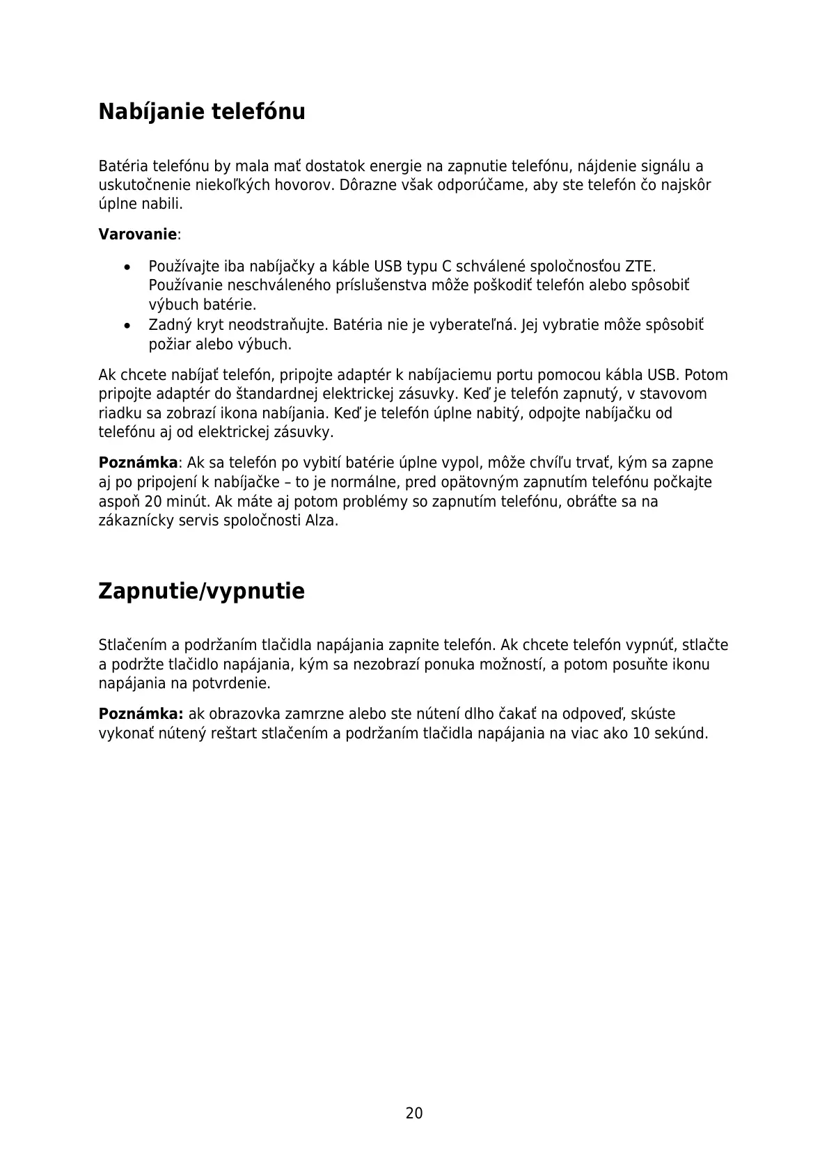 uskutočnenie niekoľkých hovorov. Dôrazne však odporúčame, aby ste telefón čo najskôr