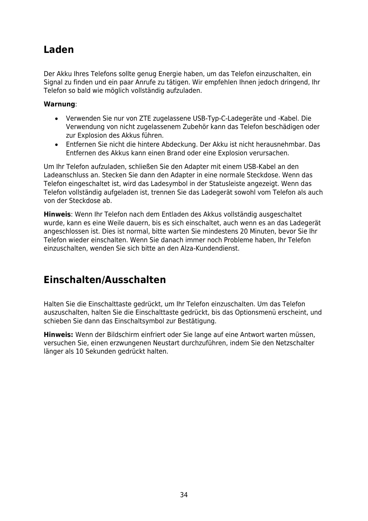 Verwenden Sie nur von ZTE zugelassene USB-Typ-C-Ladegeräte und -Kabel. Die