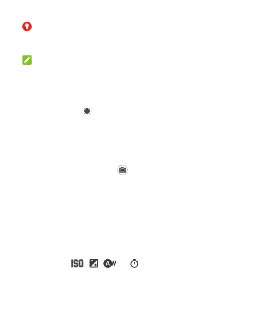 Touch , , , or to set ISO, overall exposure,