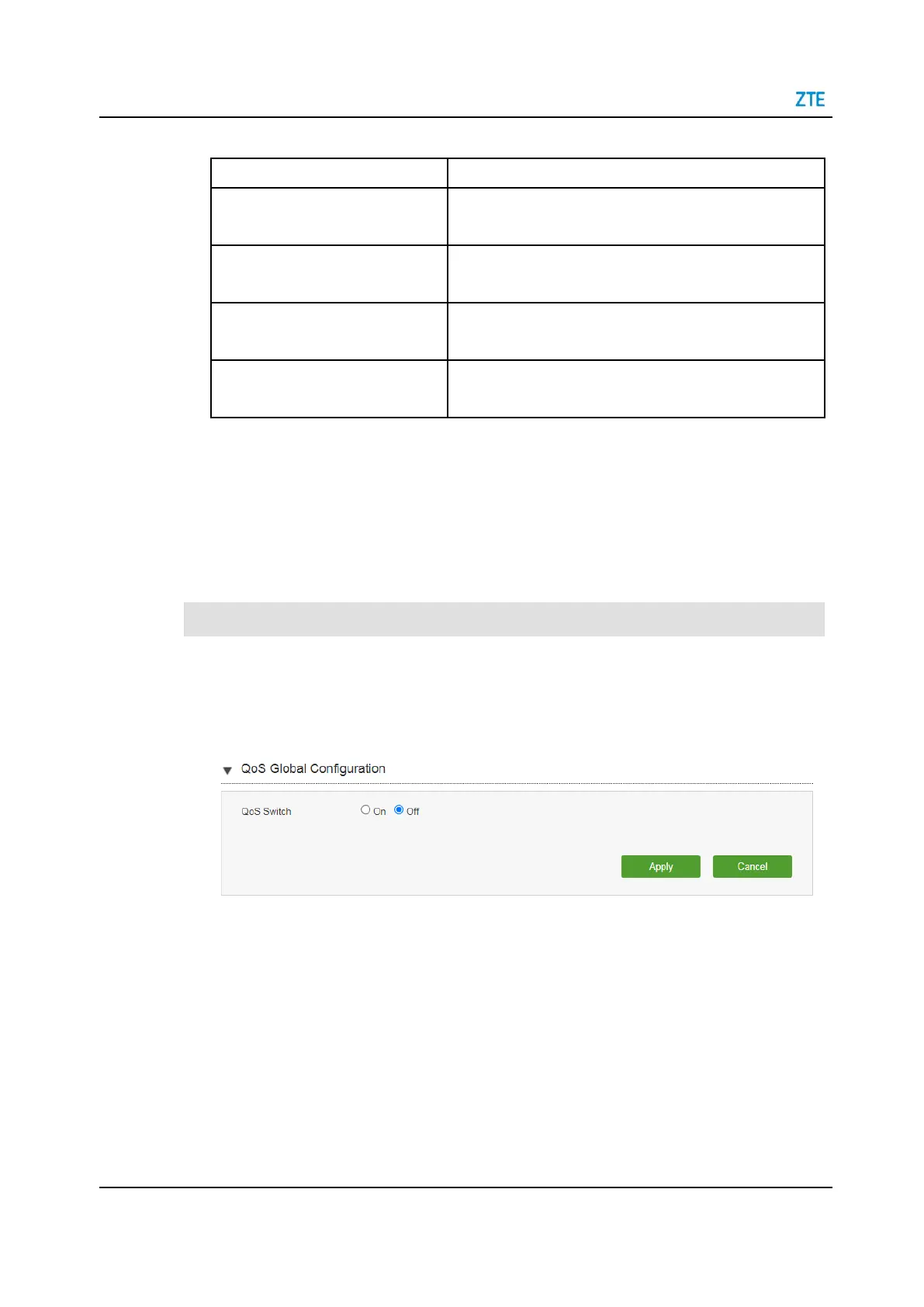 On the main page of the ZTE H1600, select Internet > QoS > QoS Global Configu-