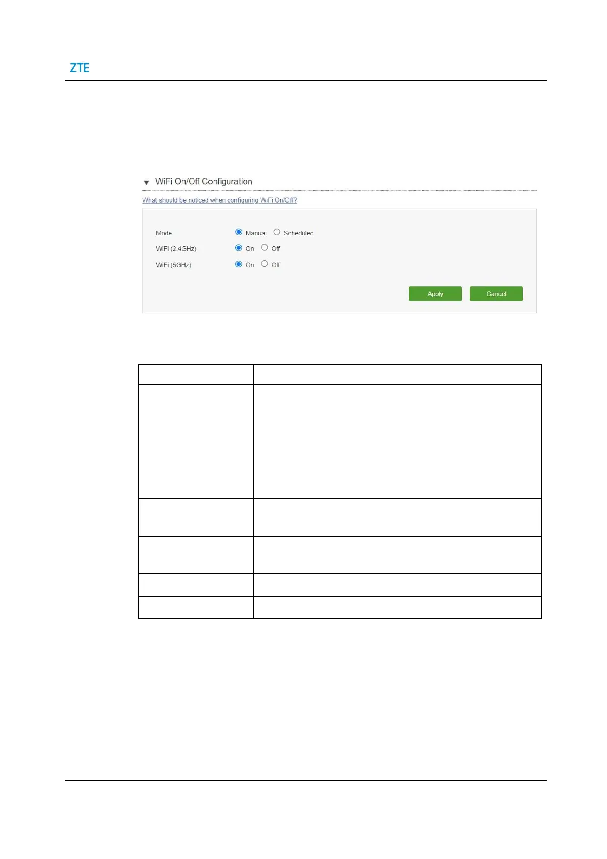 Table 5-1 WiFi On/Off Configuration parameters