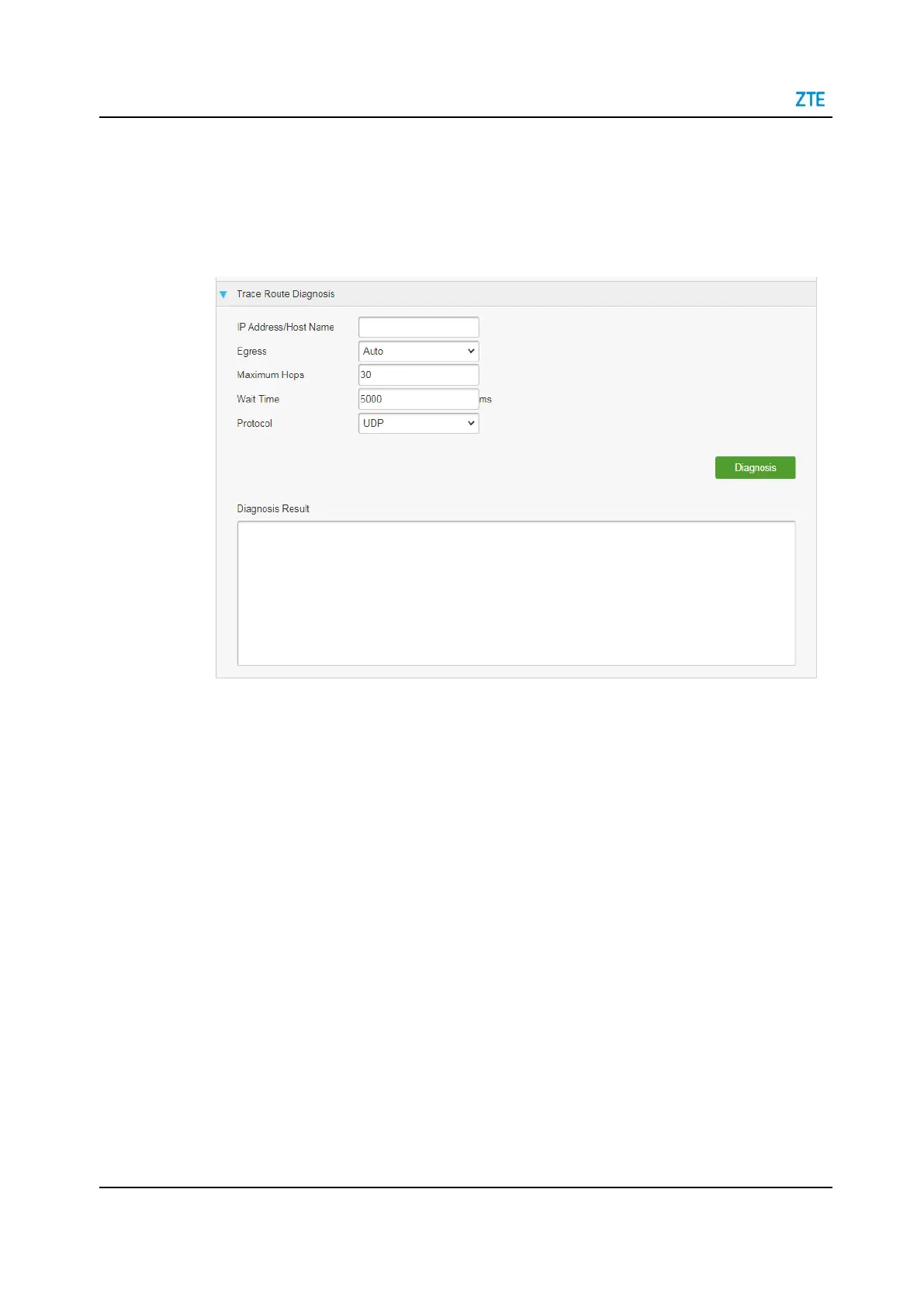 Click Trace Route Diagnosis to open the Trace Route Diagnosis page, see Figure