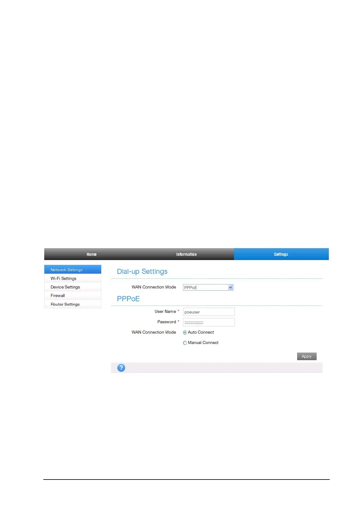 Select PPPoE, input the User Name and Password and then set the WAN Connection