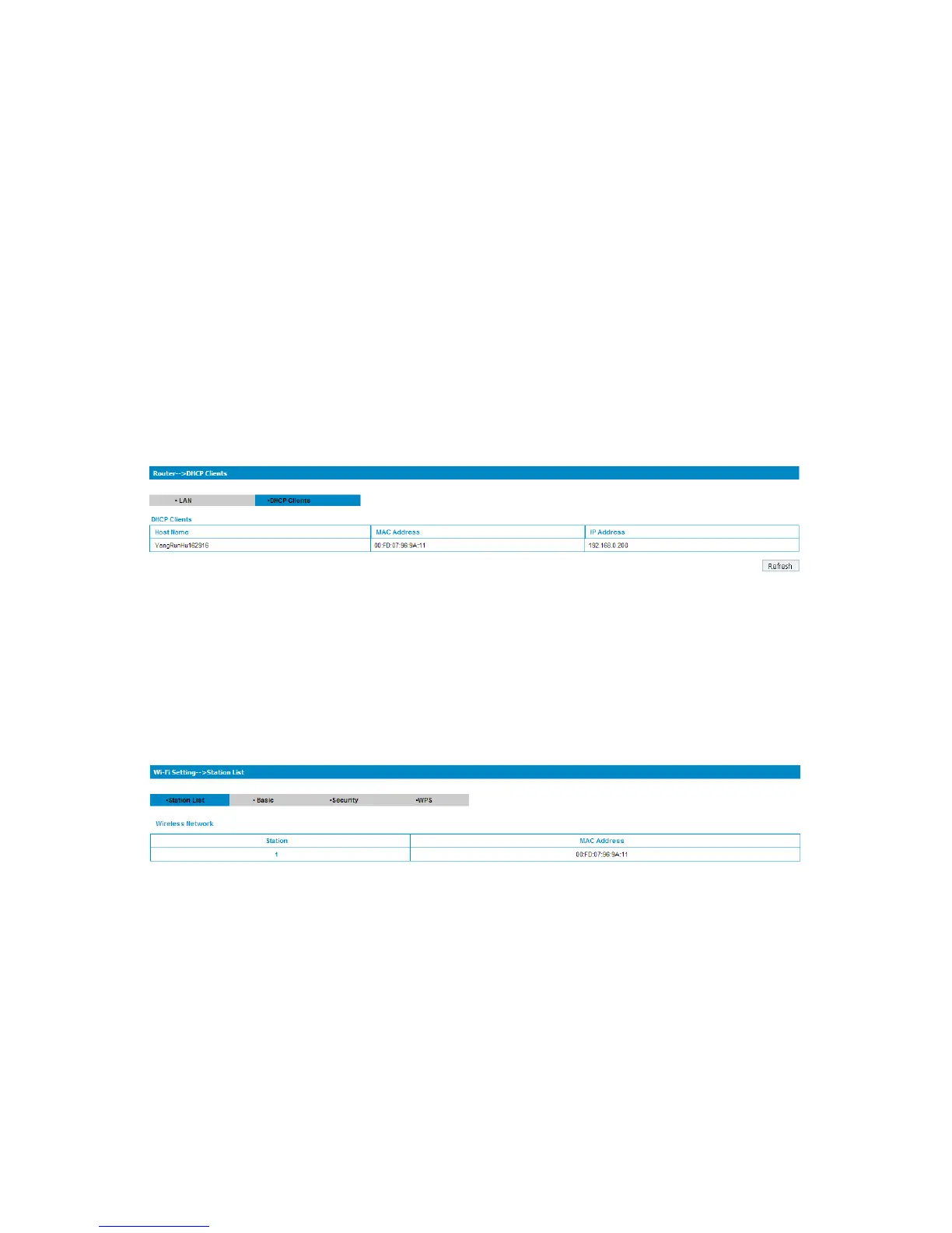 Select Wi-Fi Setting→Station List, the wireless network stations are shown