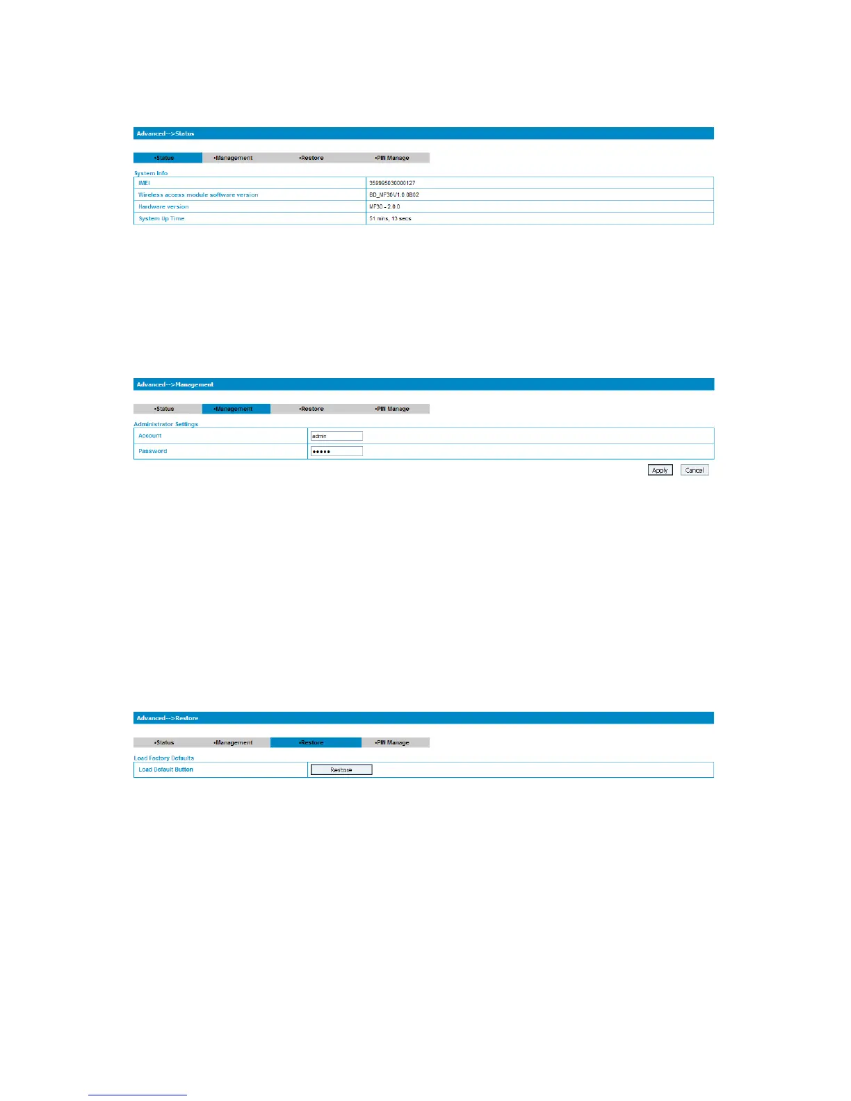 Select Advanced→Management, the administrator settings information is