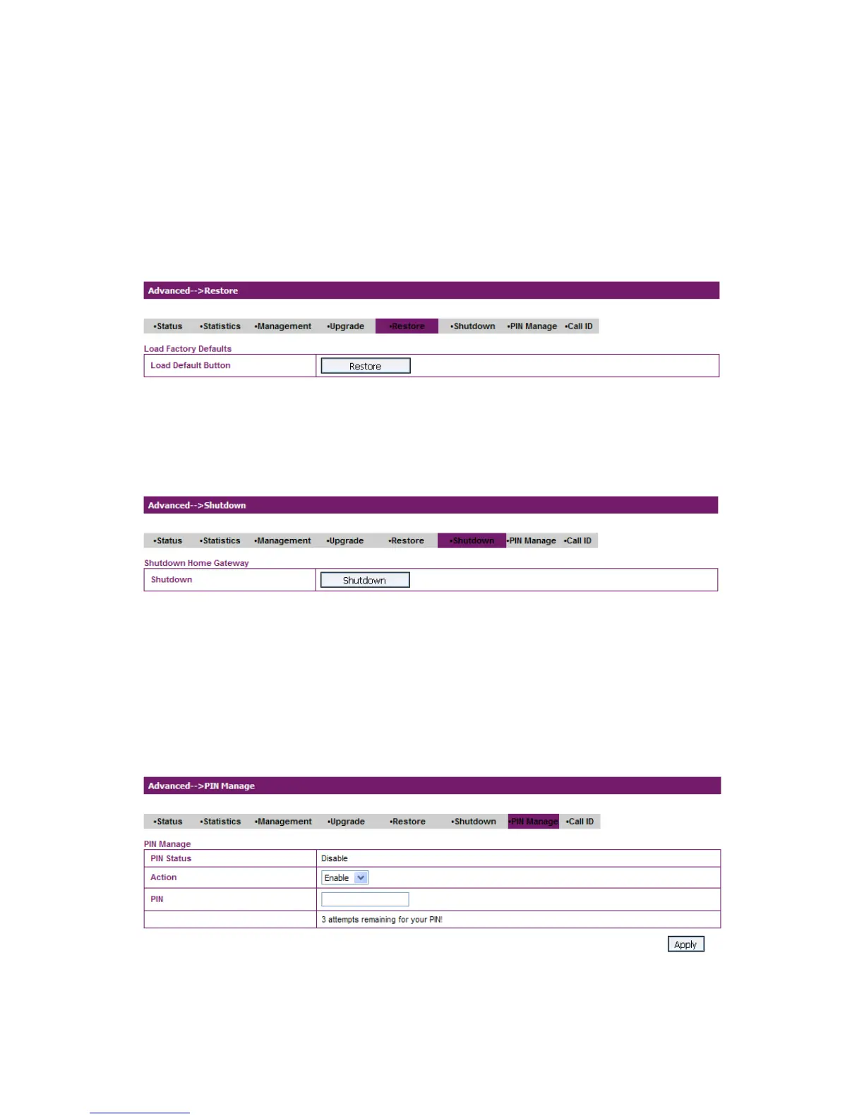 Select Advanced→Shutdown, click Shutdown to turn the router off.