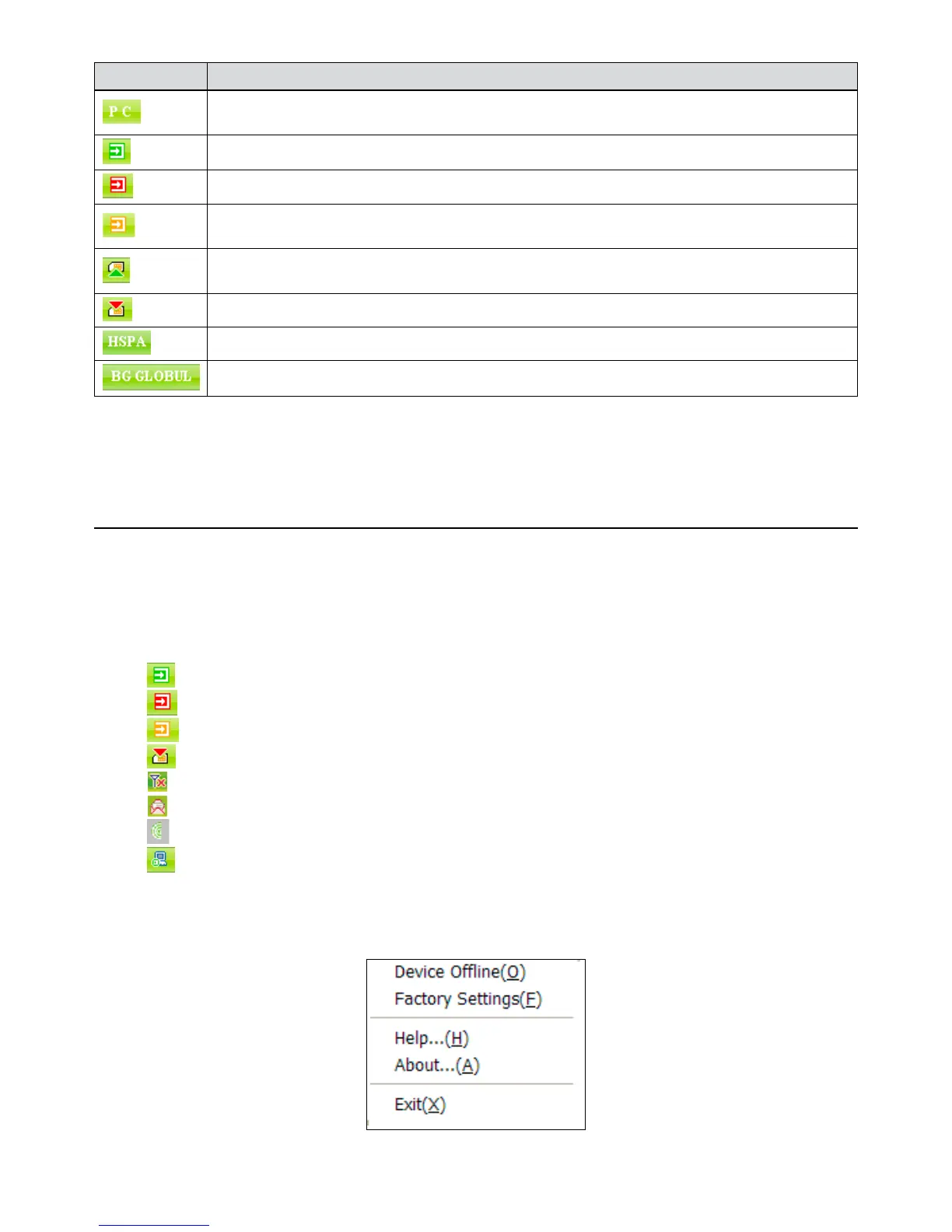 The icon indicates the current network type, i.e. GPRS or HSDPA service.