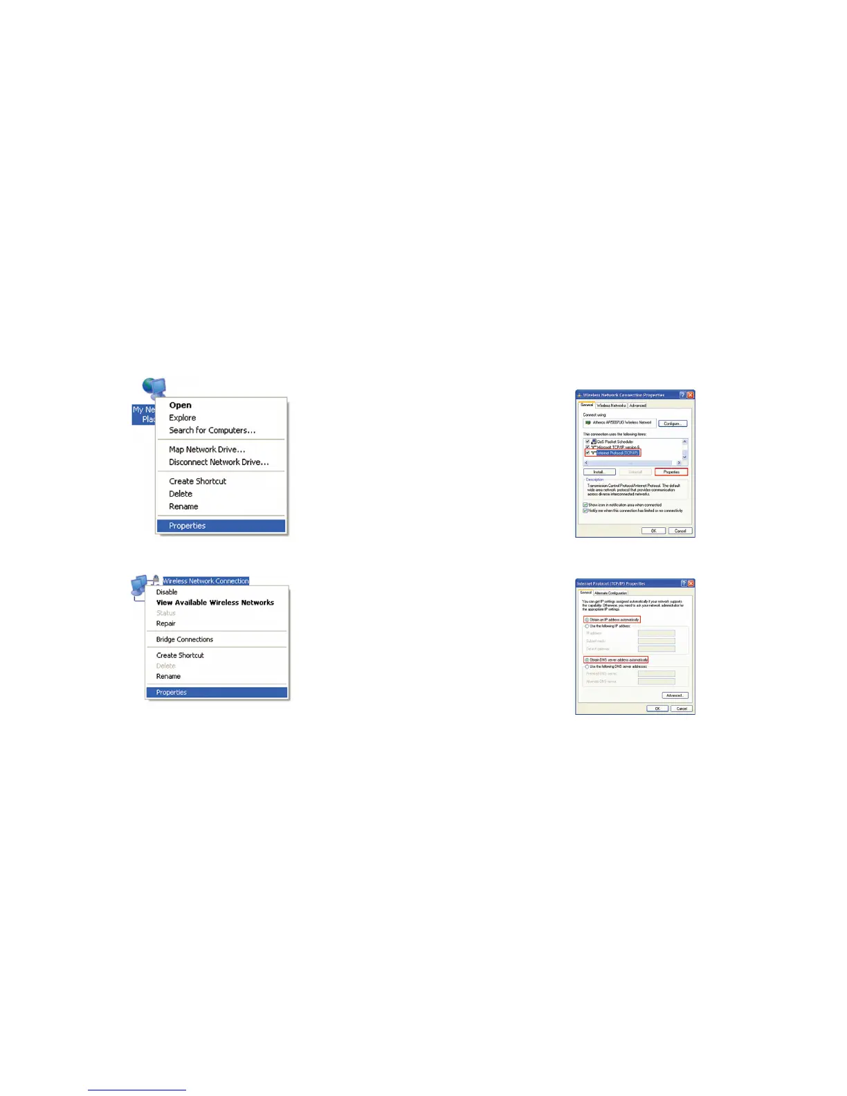 4. Select Obtain an IP address automatically and Obtain DNS server ad-