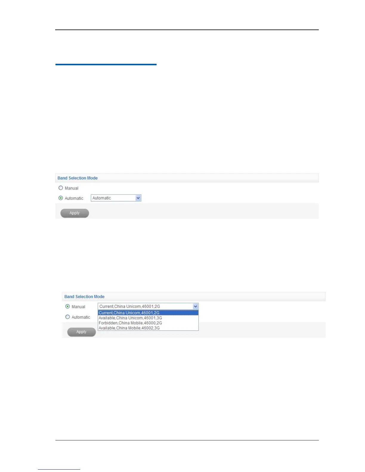 1. Select Settings→Network Select, the Band Selection Mode is shown in the following figure: