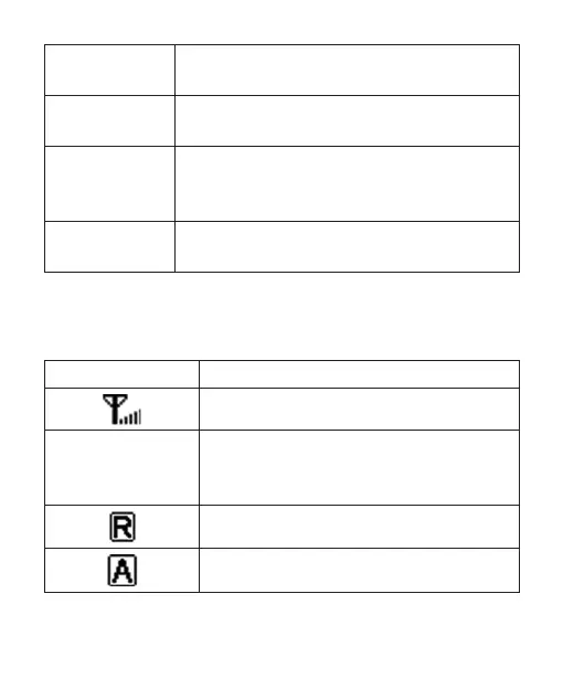 Indikasjonene som disse ikonene angir, er oppgitt i tabellen nedenfor.