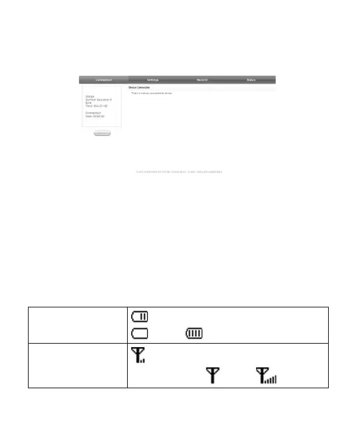 • Statusområde for dataforbindelse: Viser bruk og forbindelses-