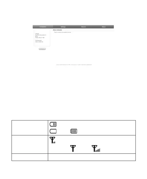 • Dataanslutningens statusområde: Visa dataförbrukningen och