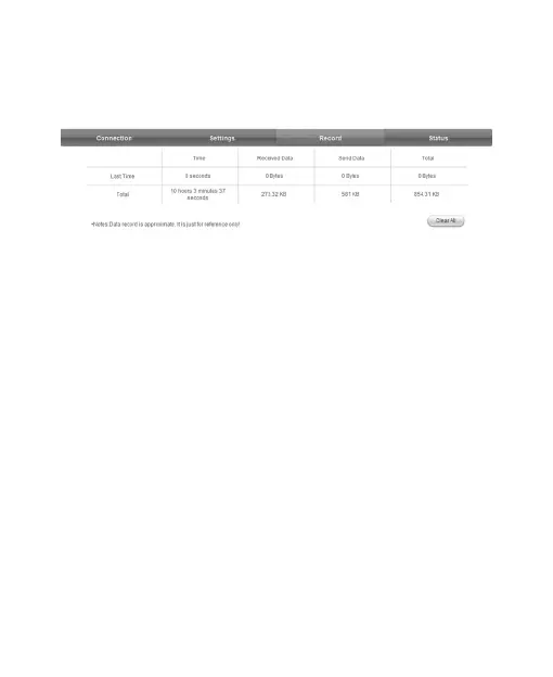 Klicka på Rensa alla om du vill radera all statistik om dataanslutnin-