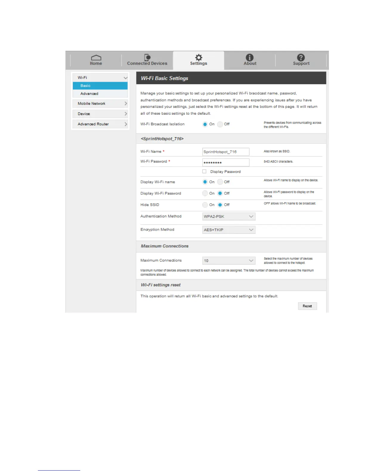 Wi-Fi Broadcast Isolation: Enable or disable this function. If On is selected, the devices