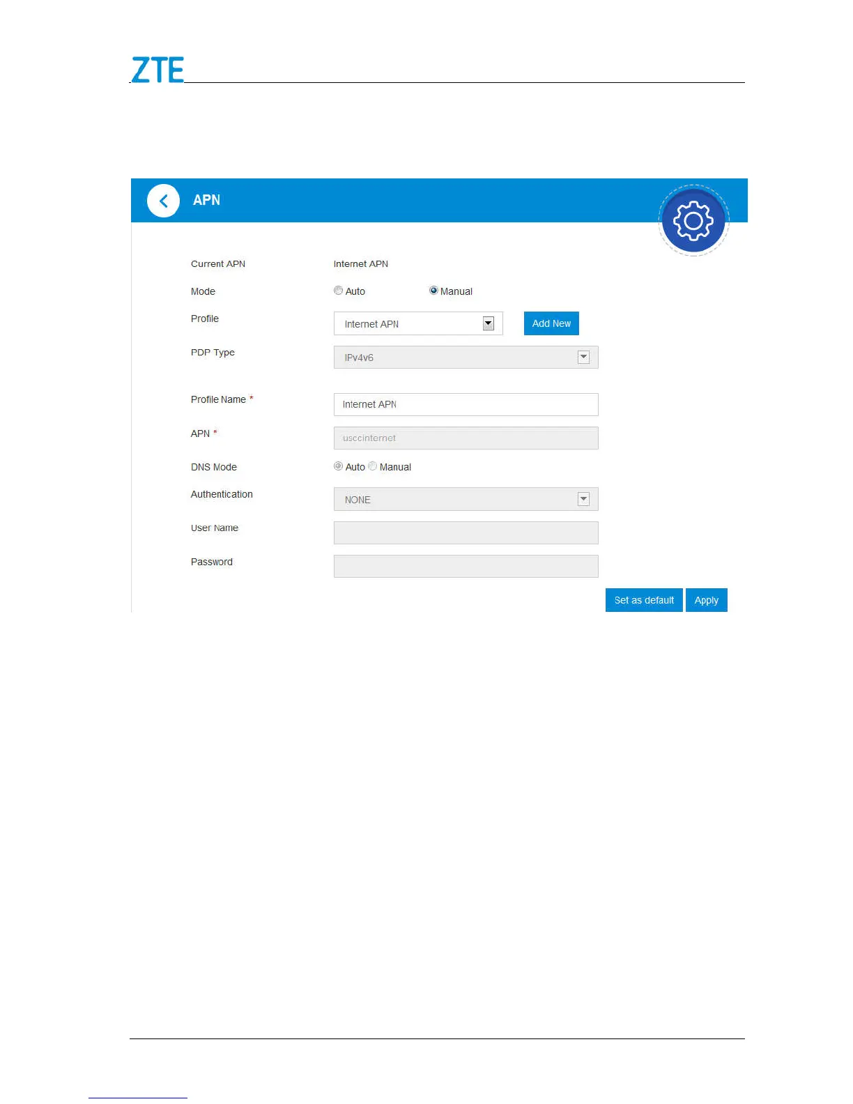 Click Settings > APN. The APN parameters are shown in the following figure.