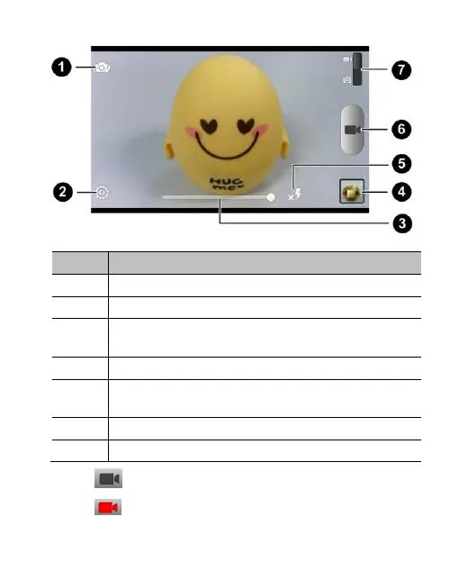 4. Touch or press the Camera Key to start recording.