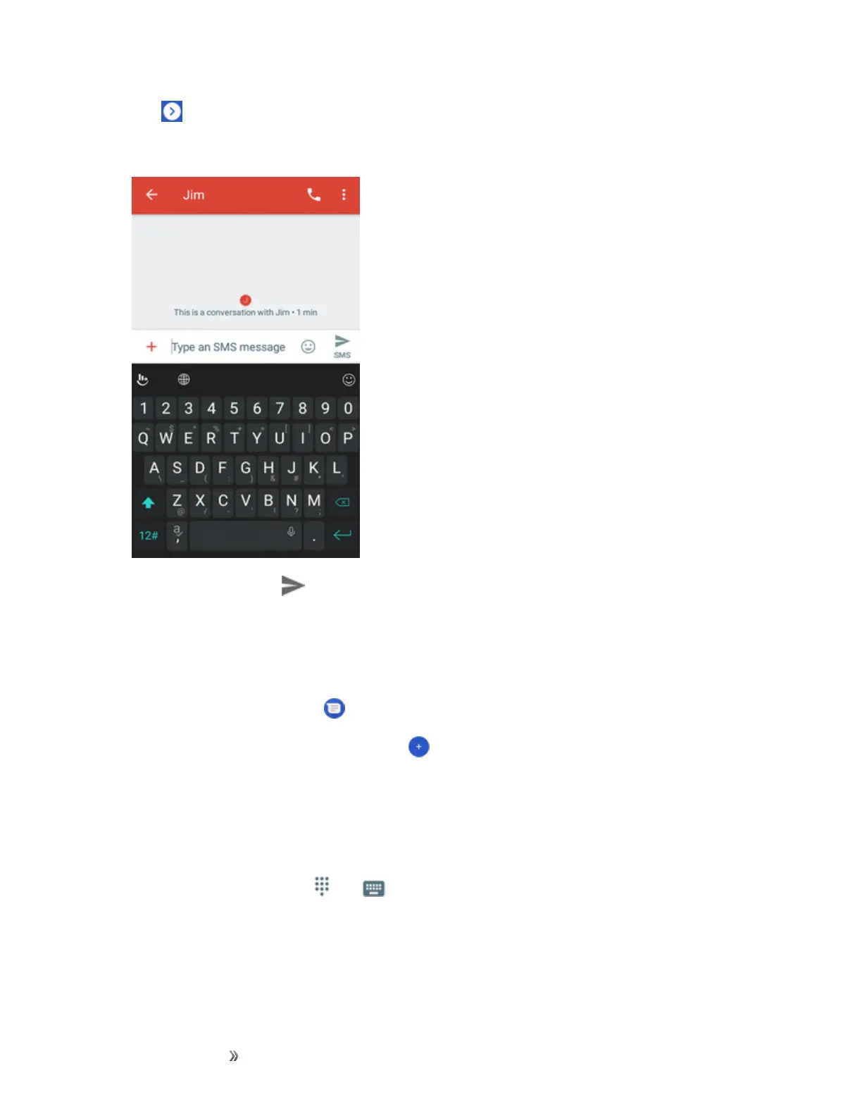 Tip:Whileenterrecipients,tap and toswitchbetweenthenumericandthefullkeyboard.