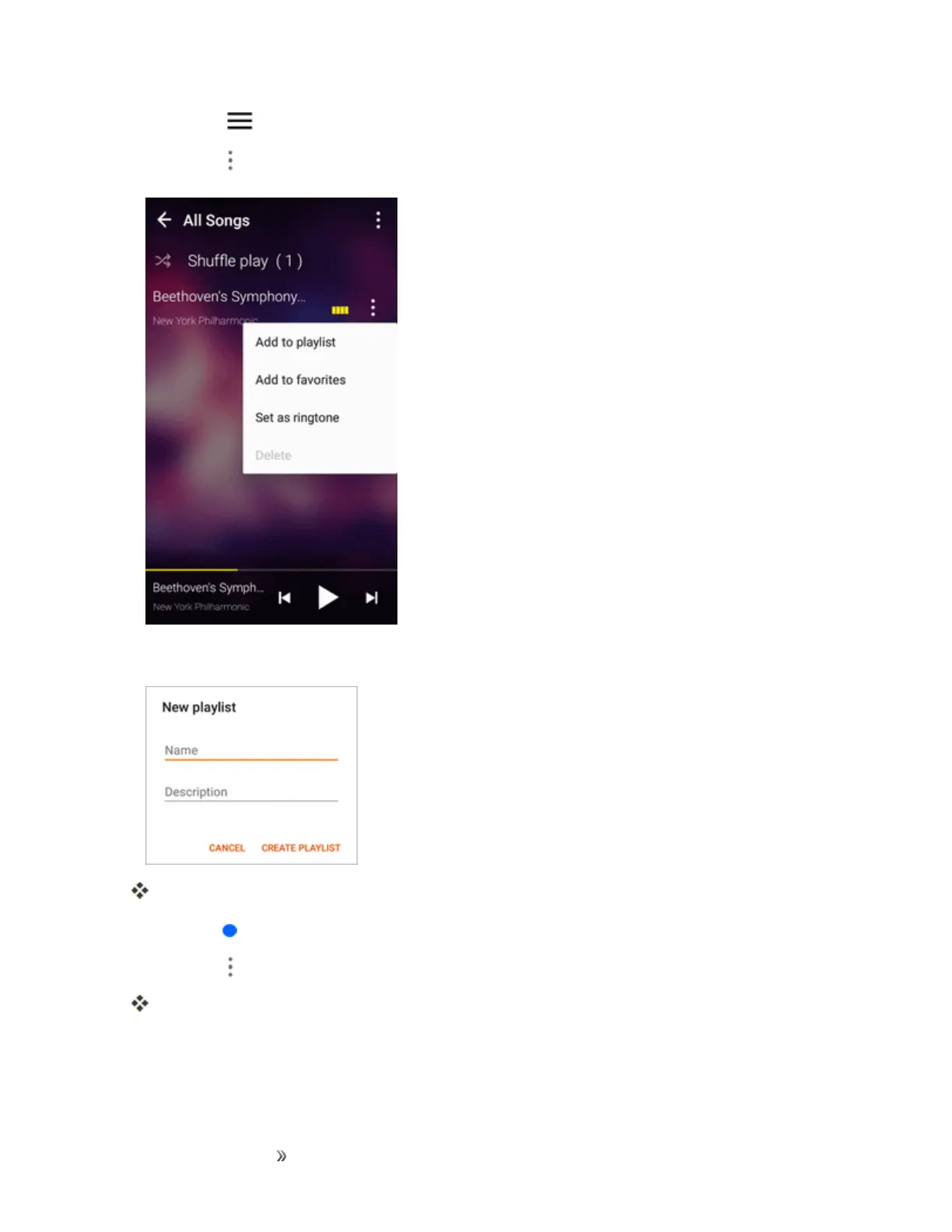 TapMenu >Musiclibrarytoviewallmusicfilesandplaylists.