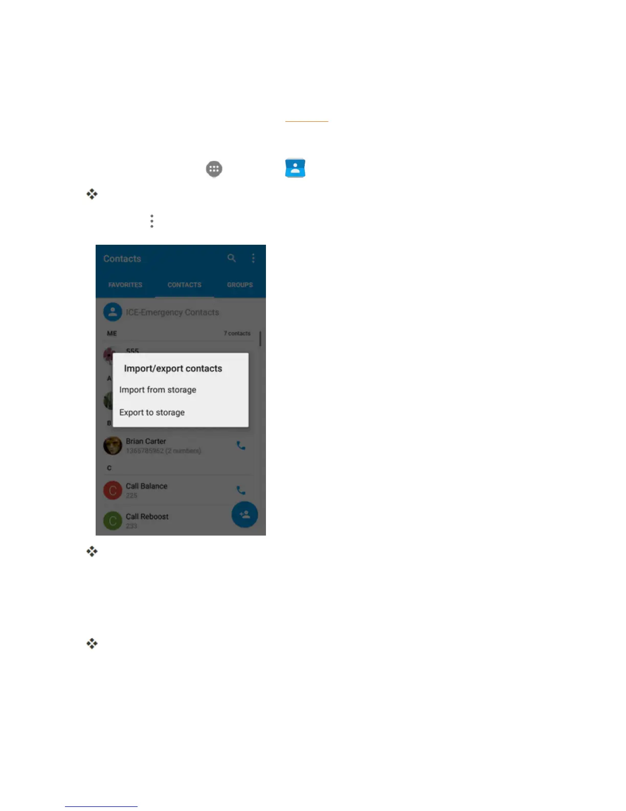 phonebeforeyoucanimportcontacts.SeeSDCardforSDcardinformation.