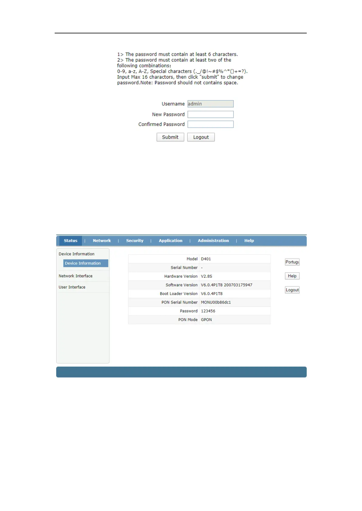 Software Version, PON SN, PON mode and so on.