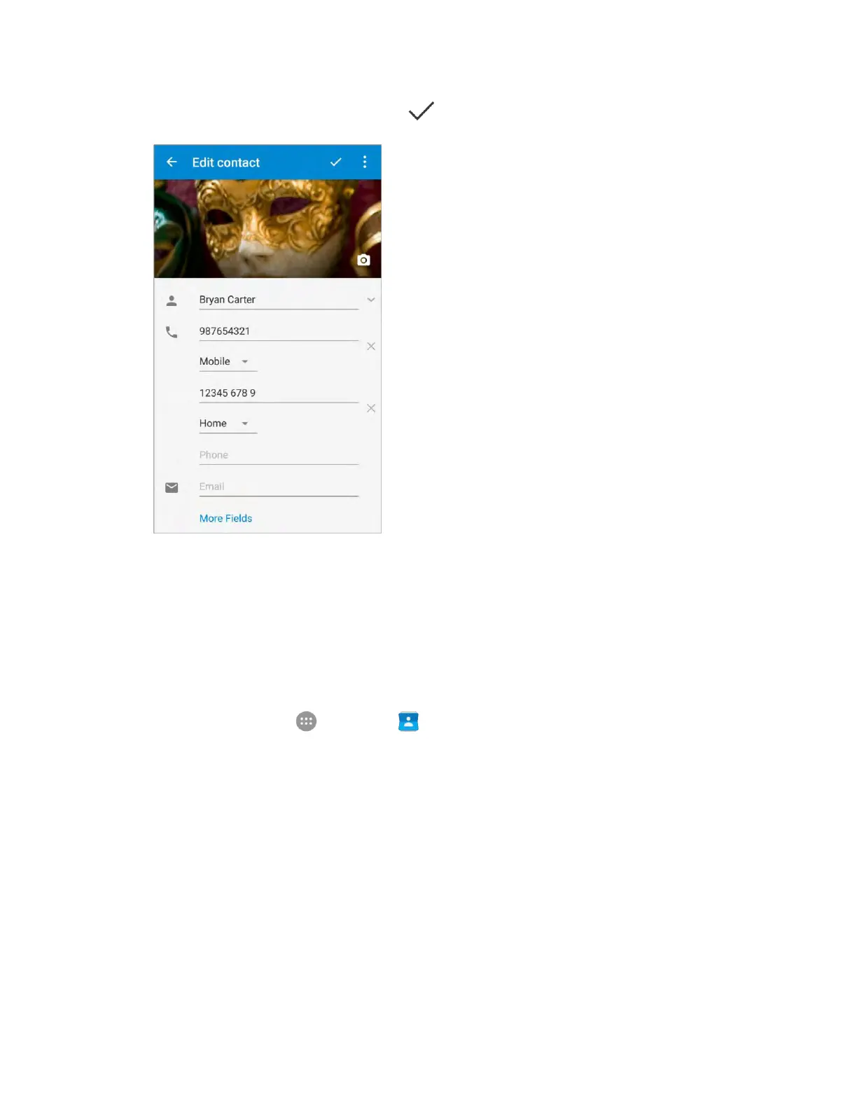 Note: To select a type (label) for a phone number, email address, or postal address (such as Mobile,