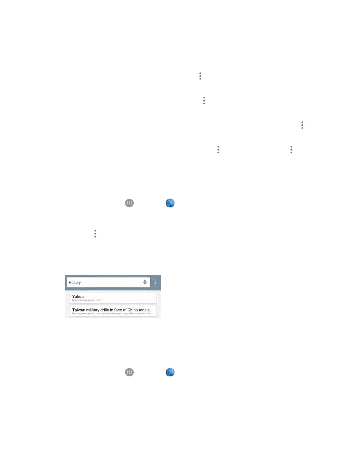 ● Deleting Bookmarks: From the browser, tap Menu > Bookmarks, touch and hold a bookmark,
