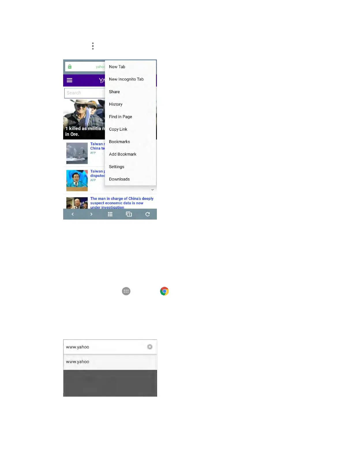 1. From home, tap Apps > Chrome .