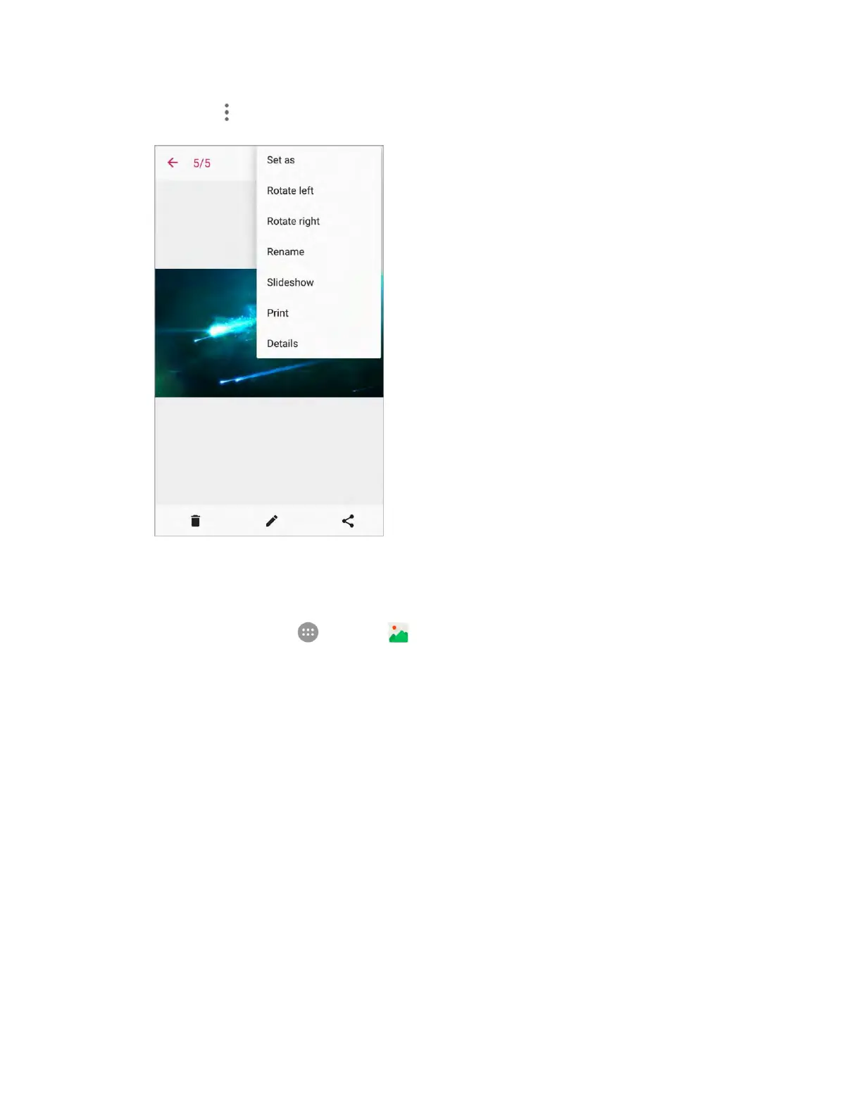 4. Tap Menu and then select either Rotate left or Rotate right.