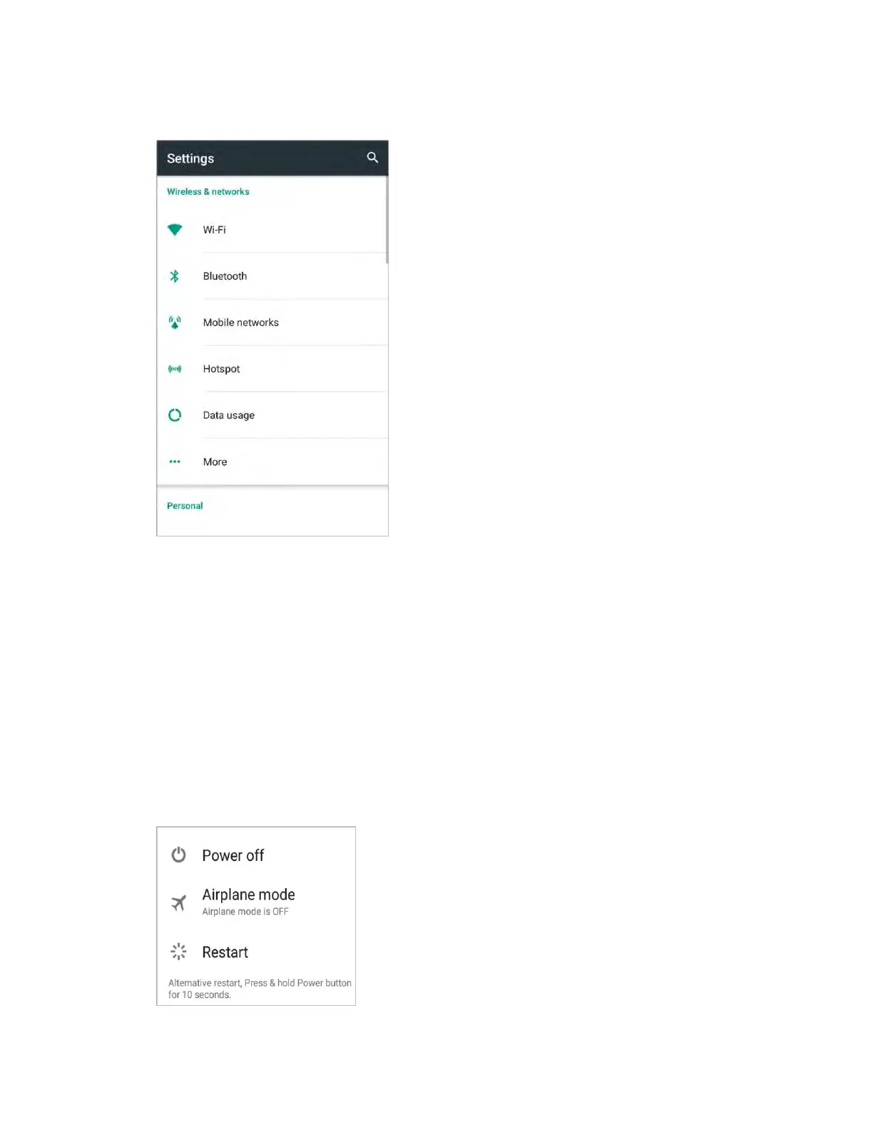 ■ Press and hold the Power/Lock key, and then tap Airplane mode.