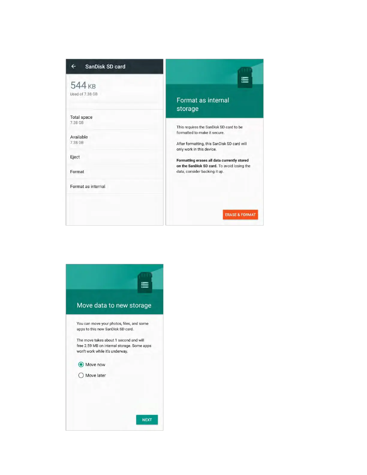 the SD card. Tap Move now or Move later and tap NEXT. Follow the onscreen instructions to