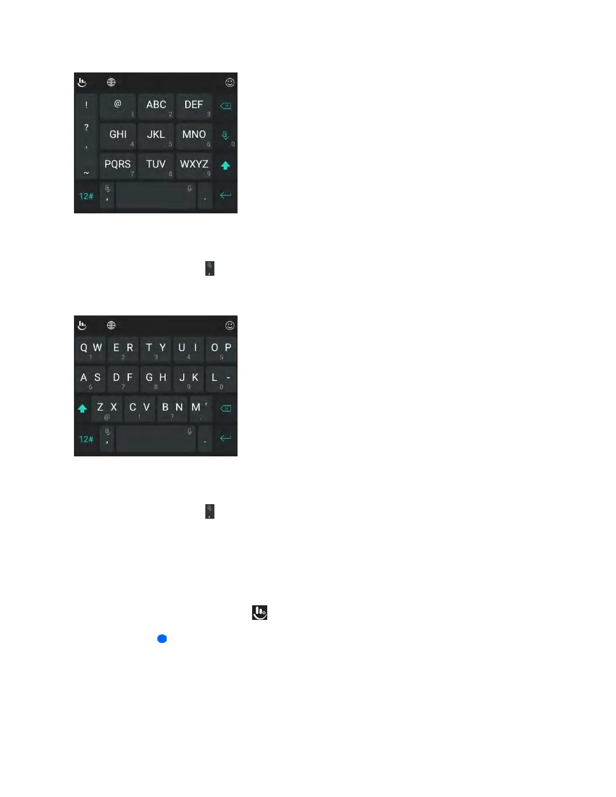 2. Tap Back to return to the text field. Open the TouchPal keyboard and switch to the full layout.