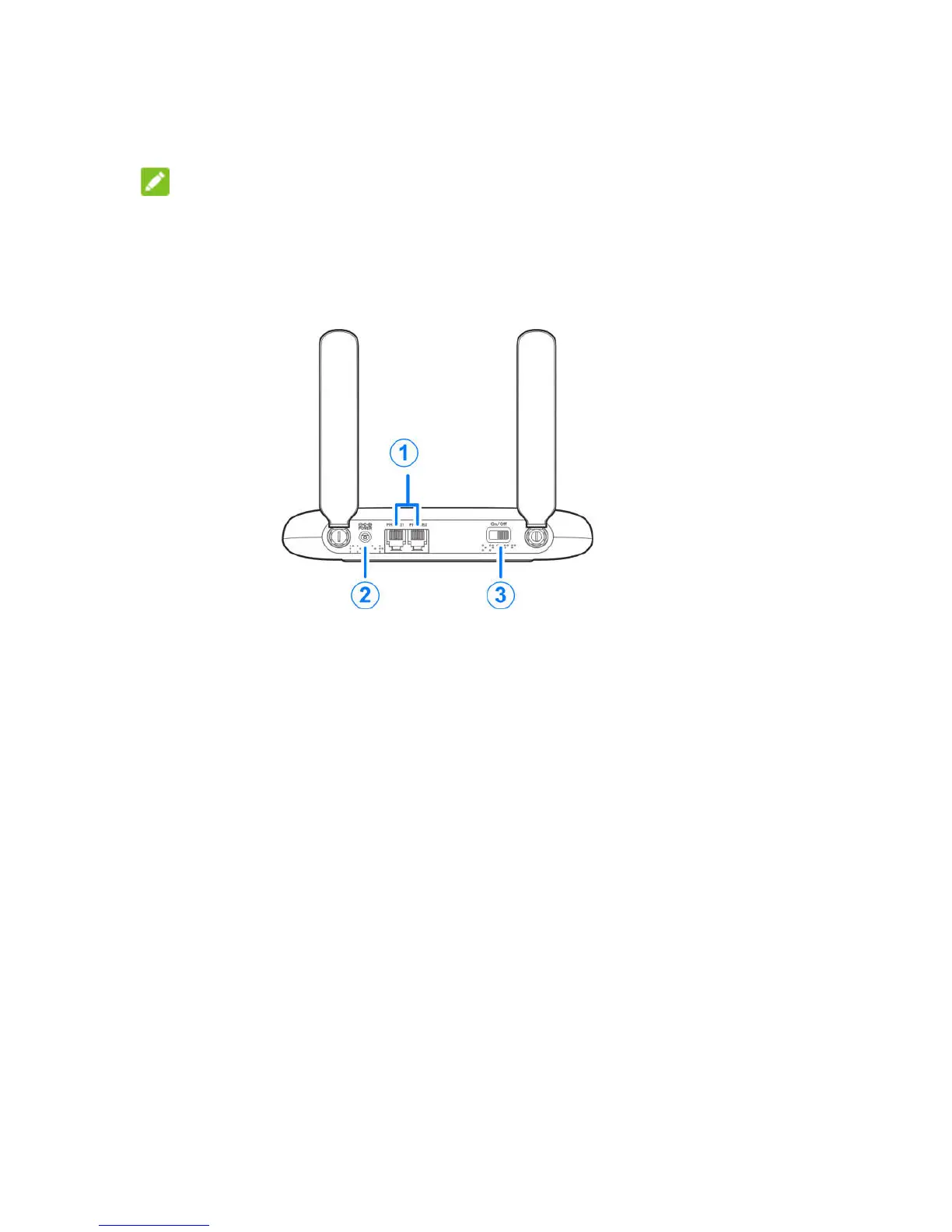 1. Telephone ports: RJ11 connector for connection to telephone.