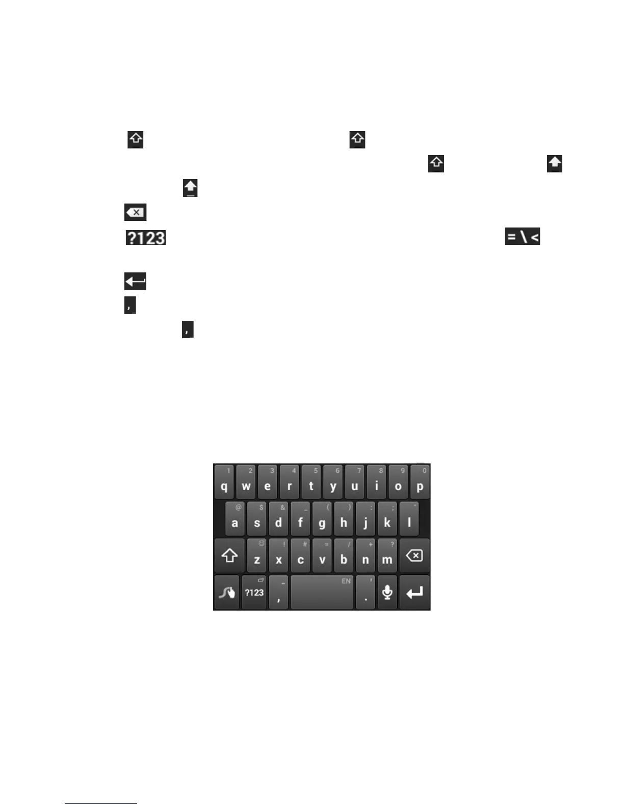 • Touch to use uppercase. Double-tap to lock uppercase. This key also