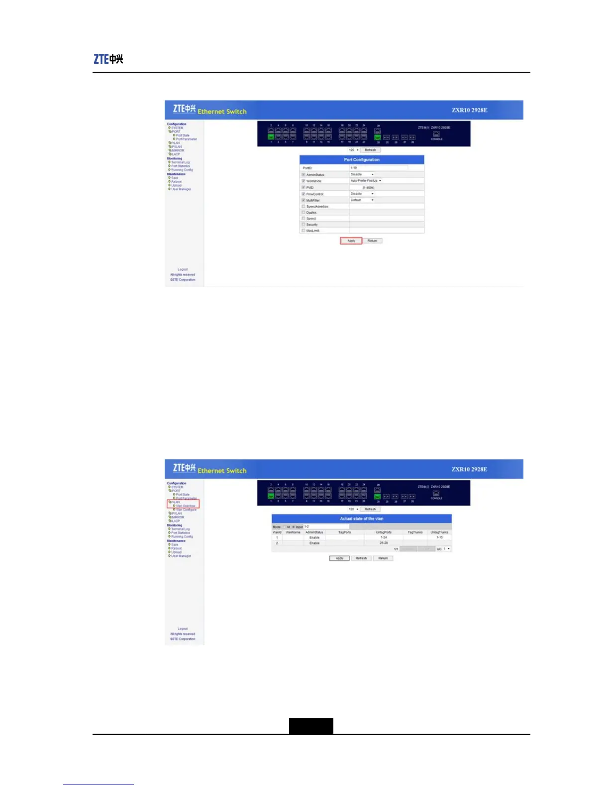 Zte ZXR10 2910E-PS - Figure 5-16 Bulk Port Configuration Page; Figure 5-17 VLAN Information Page
