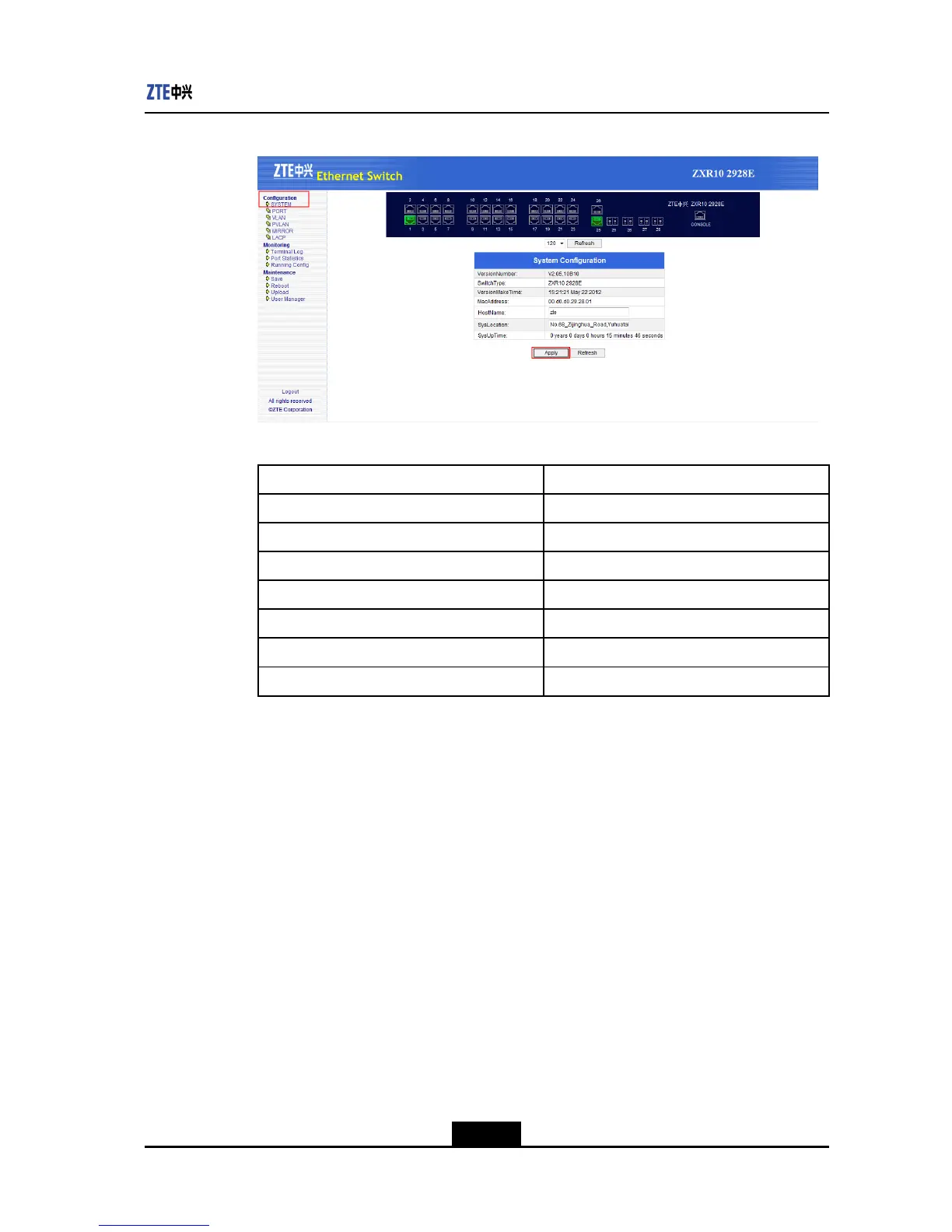 Clickdirectorytreeontheleftofsystemmainpage,Conguration>Port>Port