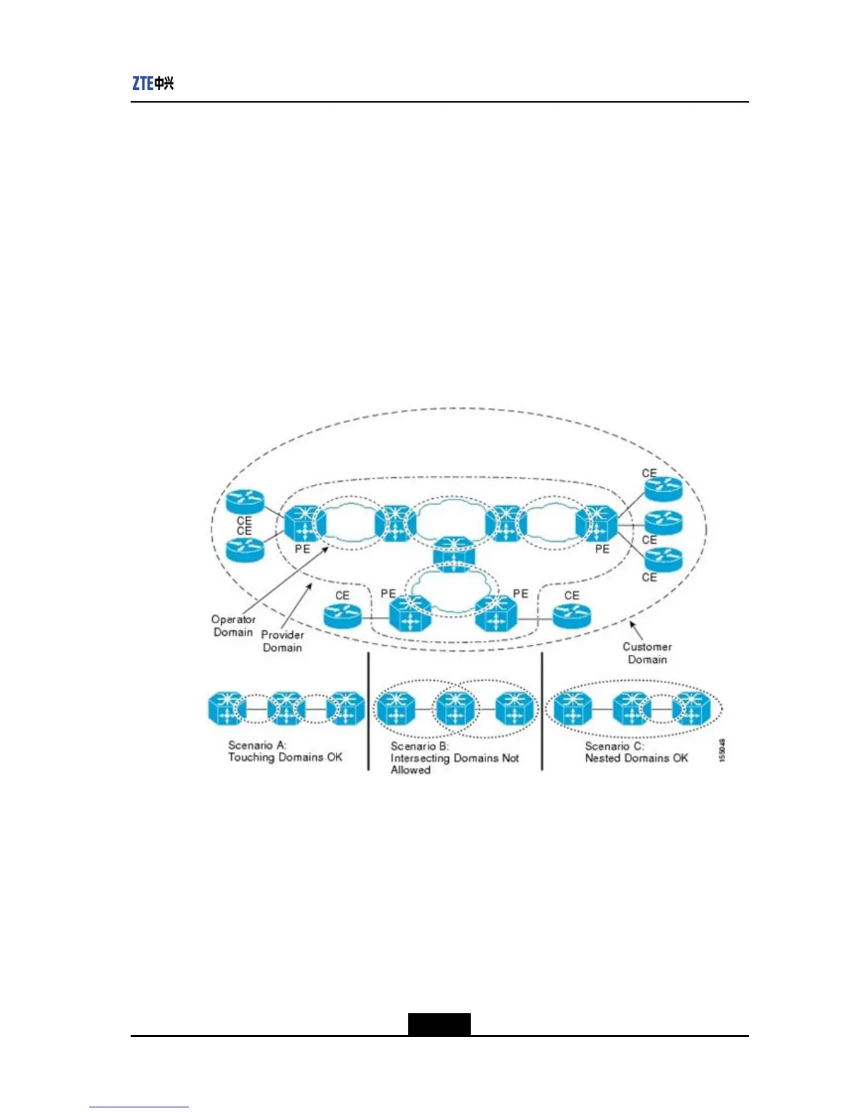 AsshowninFigure4-57,anetworkisdividedintoacustomerdomain,providerdomain,