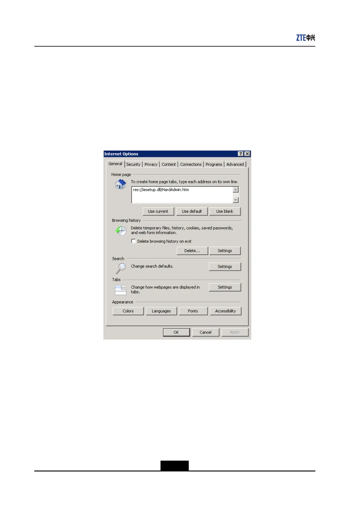 Zte ZXR10 5250-28SM - Figure 5-55 Internet Options Dialog Box