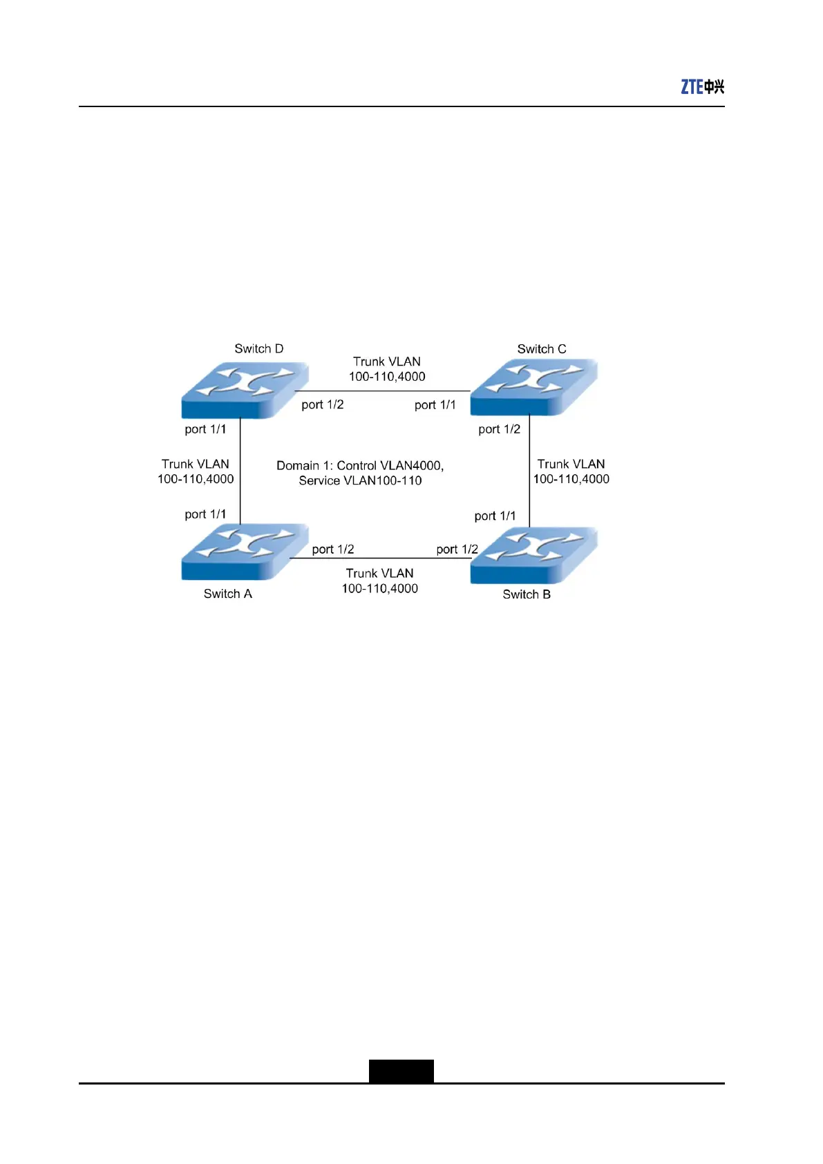Switch_A(config)#setERPSdomain1ring-id1raps-vlan4000ring-easttrunk1
