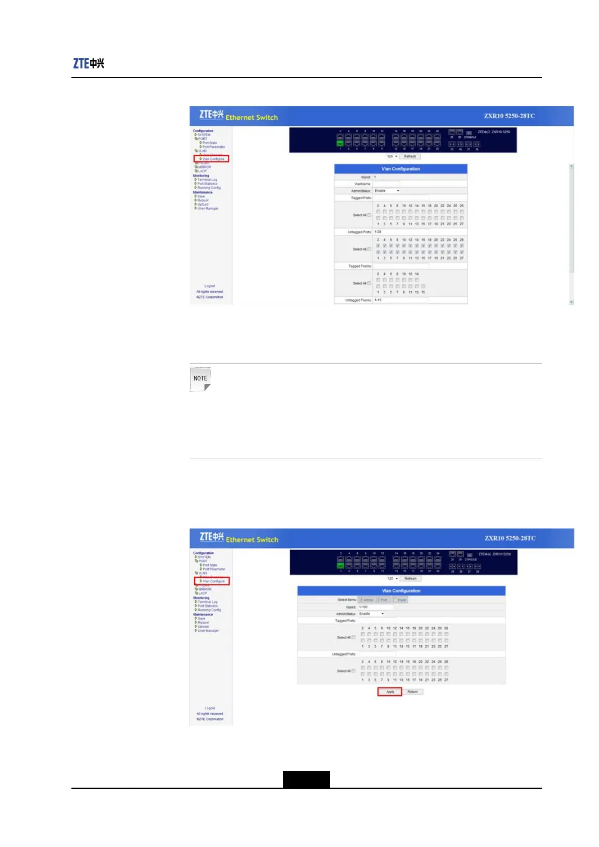 Whenconguringport/trunkintheVLAN,youcanenterport/trunknumberin