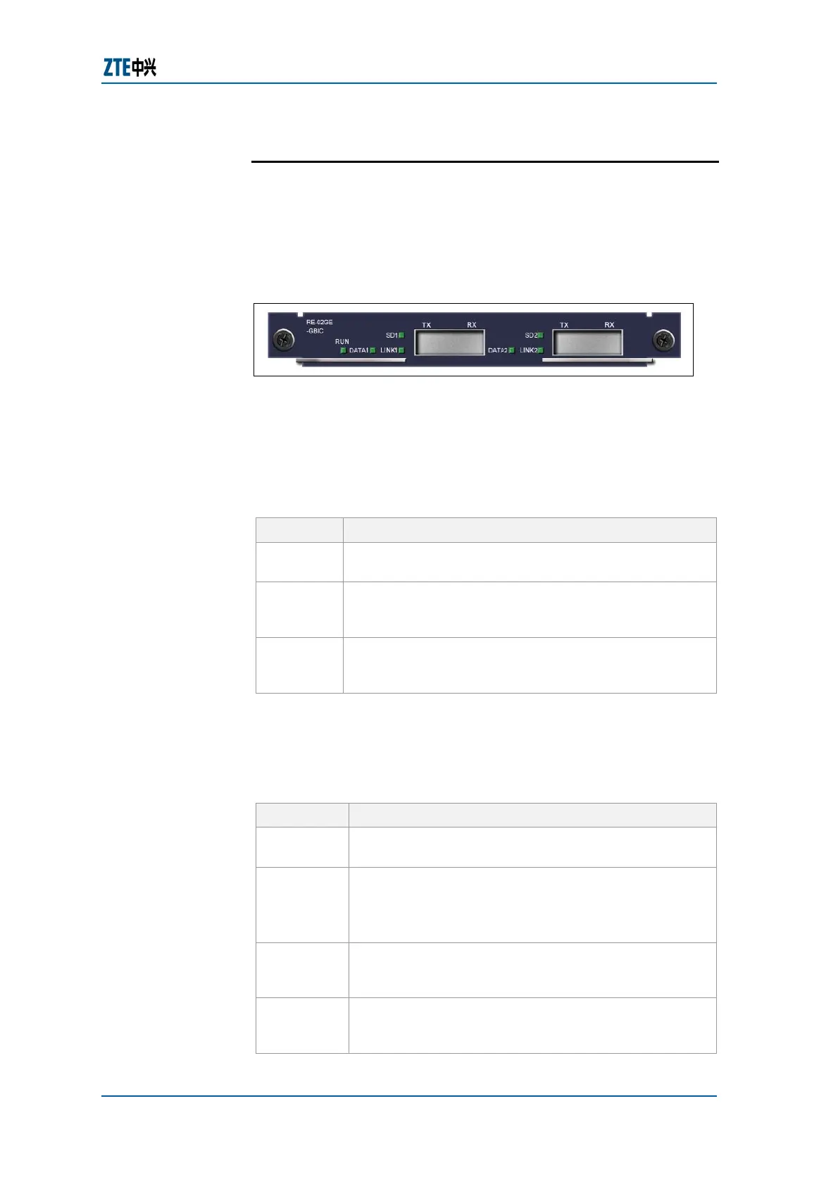 RE-02GE-GBIC card contains seven indicators Table 31 sows