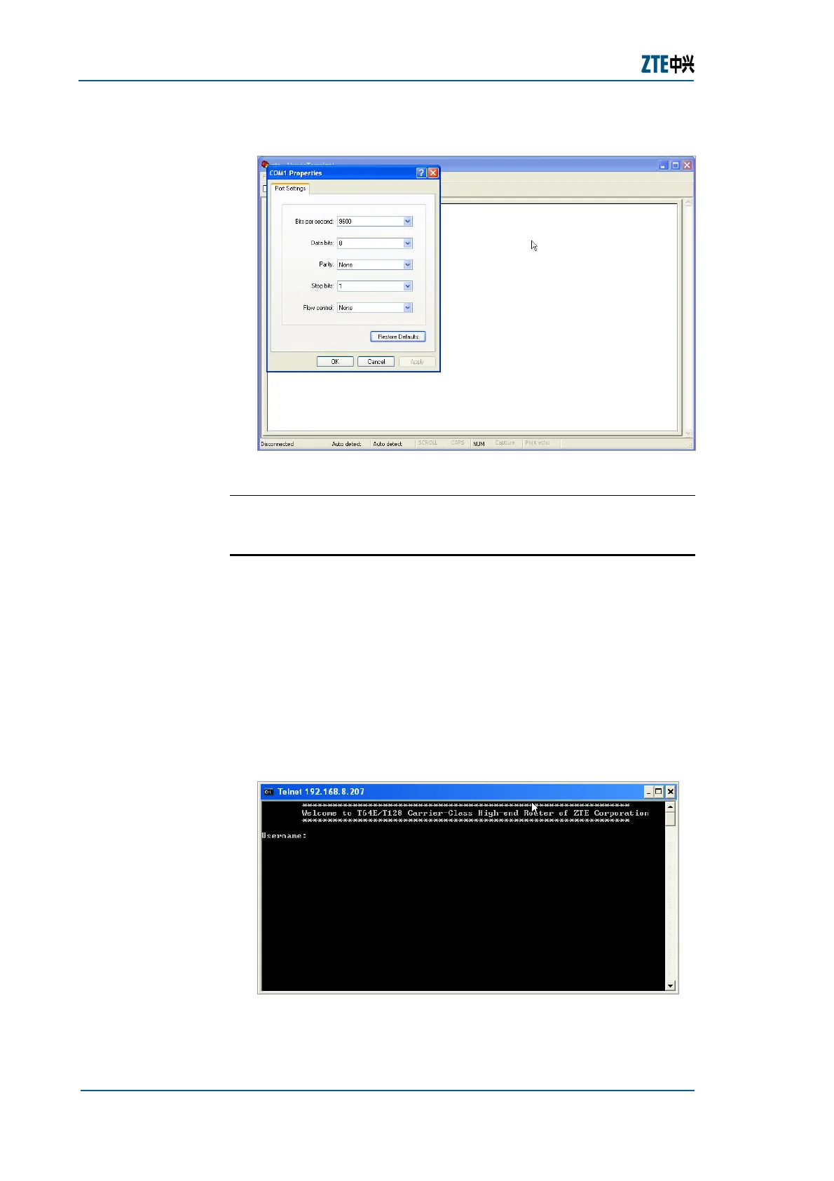 This topic describes how to configure telnet connection on