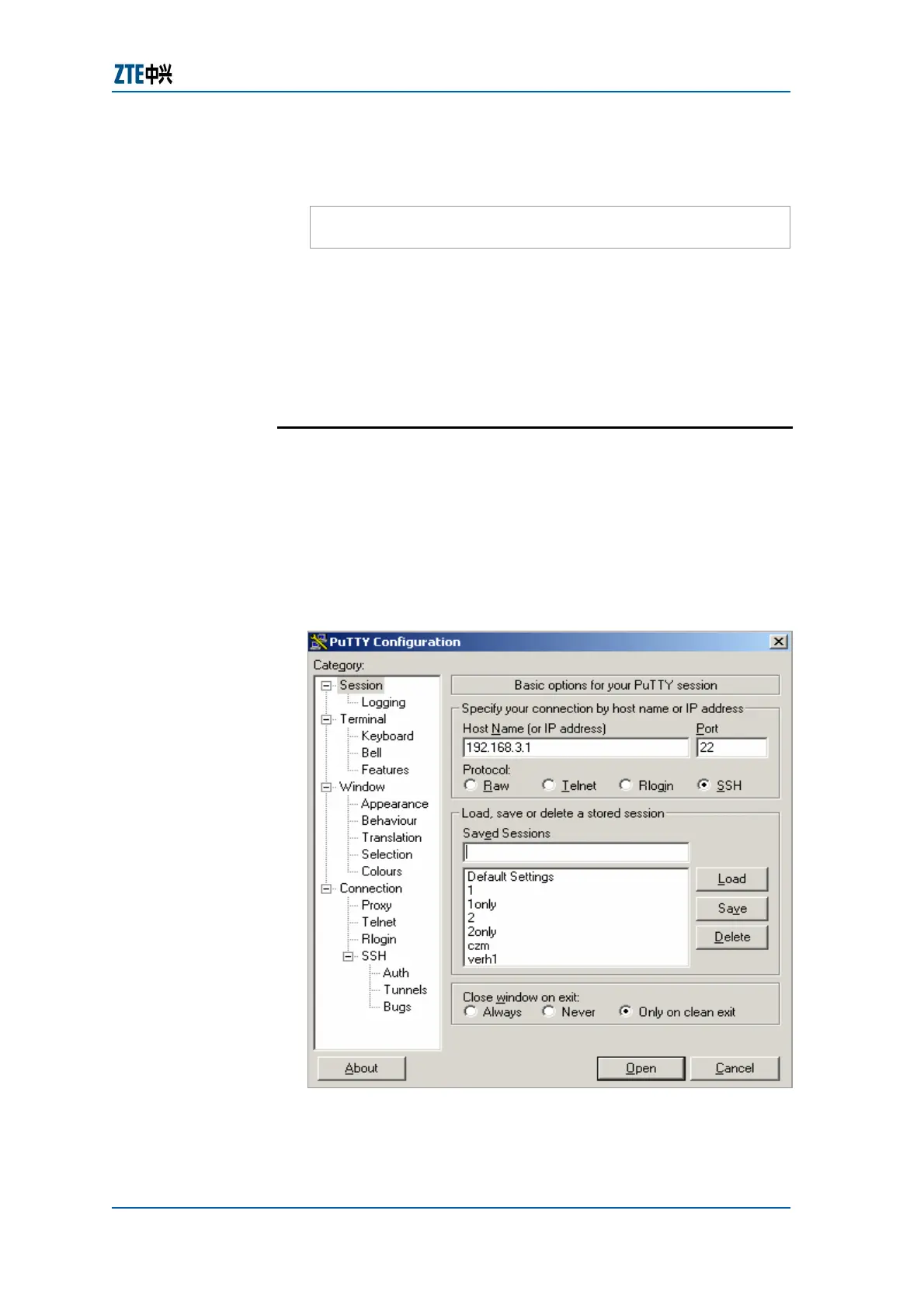 1. Enable Putty.exe at the SSH client. Enter the IP address of