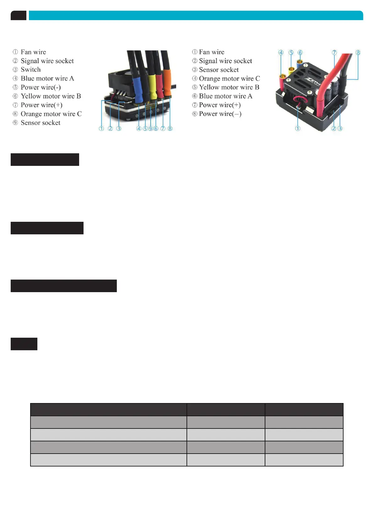 Orange motor wire C of the ESC can be connected with the motor wires freely. If the motor runs