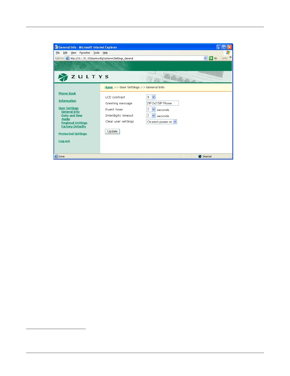 Figure E-11 User Settings – General Info panel