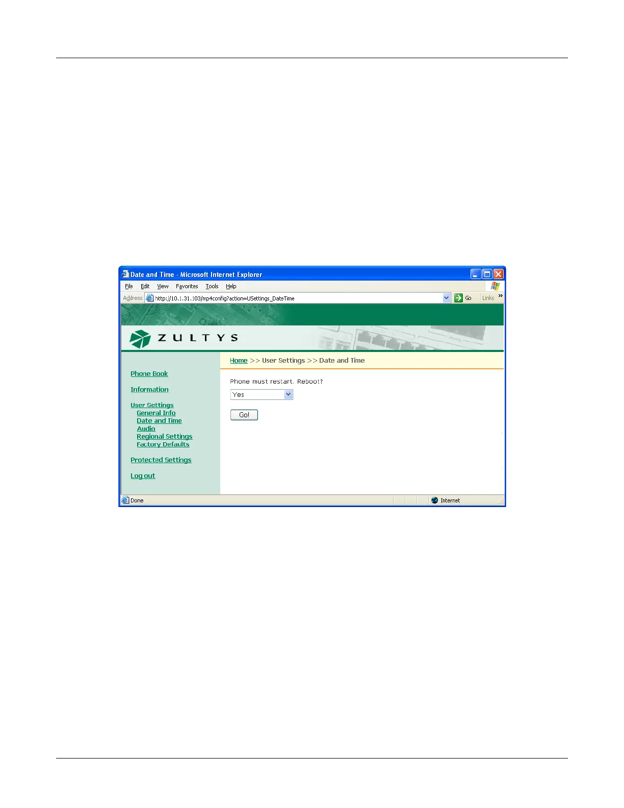 GMT offset, select “Yes” and press the Update button. After the phone resets, it will prompt you